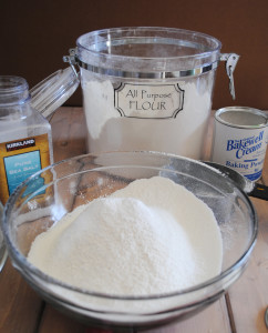 If you are making more than one cup of self-rising flour, layer the ingredients by first putting in a cup of flour, sprinkling in some of the baking powder and salt and then repeating that process.