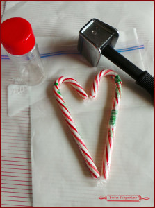 - Unwrap candy canes and break into 3 inch pieces.